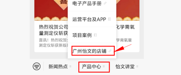 方式三:通過“怡文環(huán)境”公眾號菜單頁點擊“產(chǎn)品中心”點擊“廣州怡文的店鋪”即獲得跳轉(zhuǎn)淘寶APP的鏈接。
